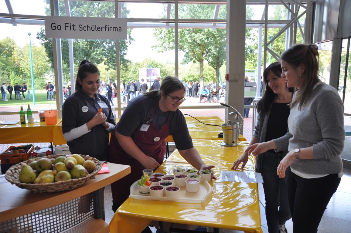 Wen dies durstig oder hungrig machte, konnte sich am Stand unserer Schülerfirma „Gofit“ unter Leitung von Frau Castelein und Frau Hammerschmidt sowie der Praktikantin Frau Klietmann mit gesunden Säften und Fruchtzubereitungen verwöhnen lassen.